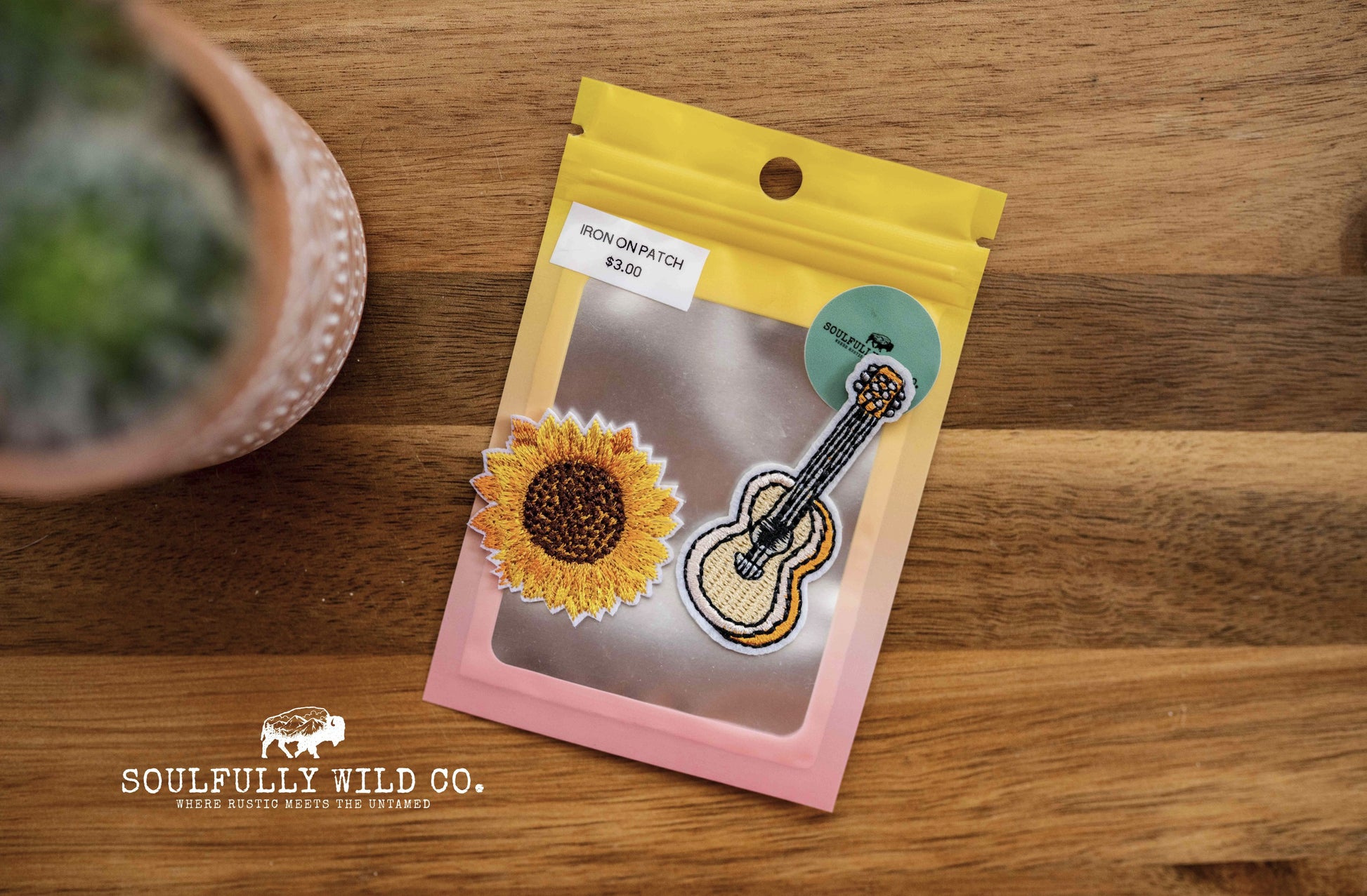 Iron On Patch - Sunflower and Guitar Yellow/Tan (2pc)