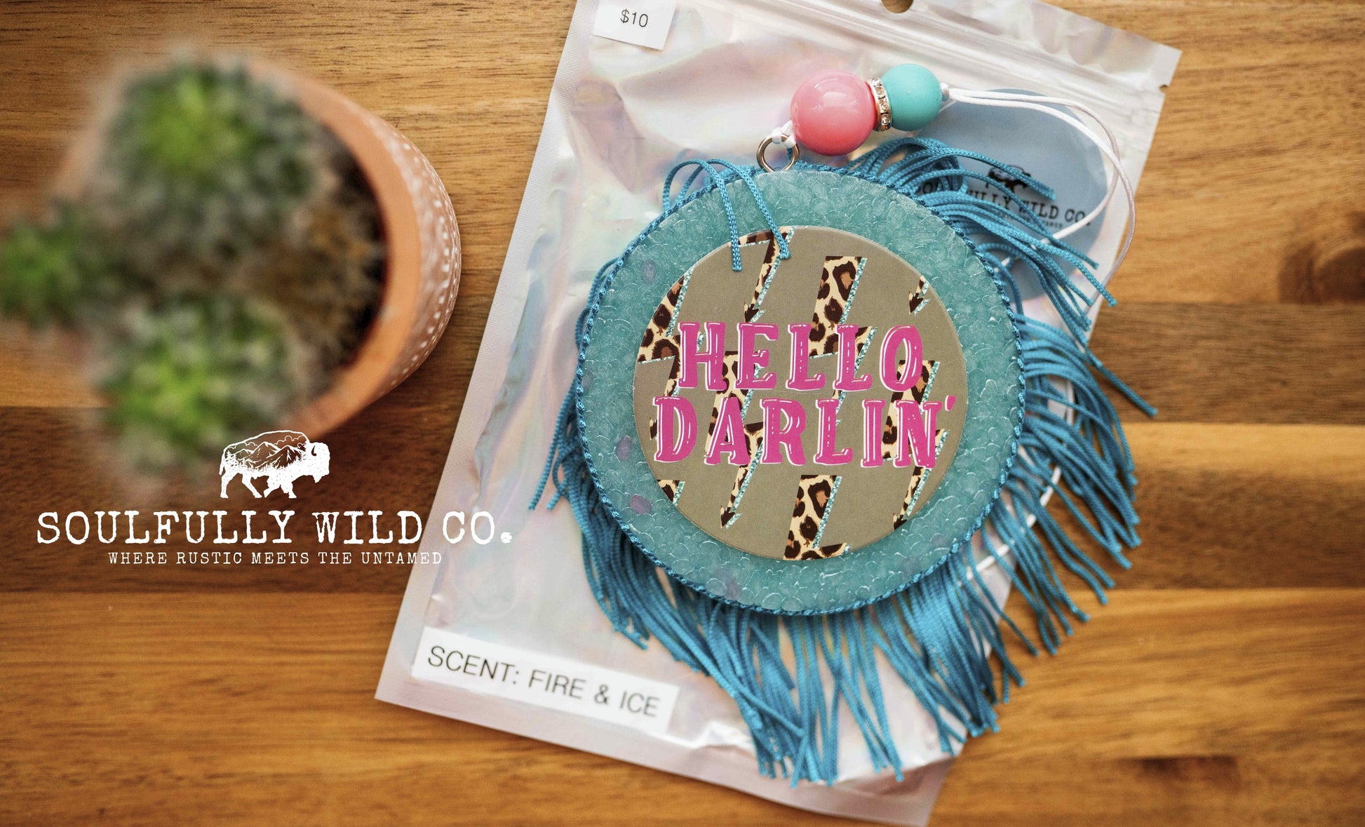 Soulful Air Freshener: "Hello Darlin'" Turquoise Circle & Fringe (Scent: Fire & Ice)